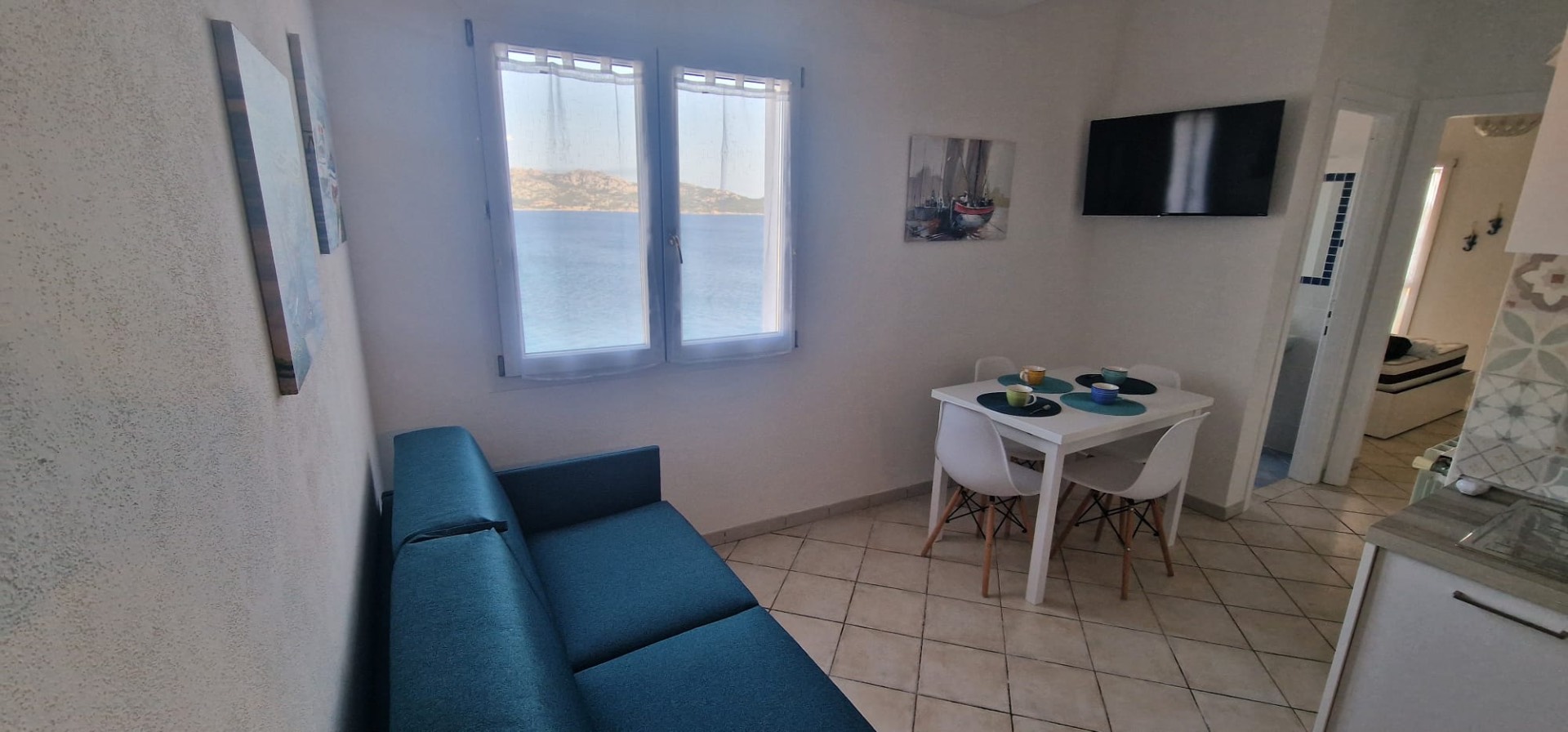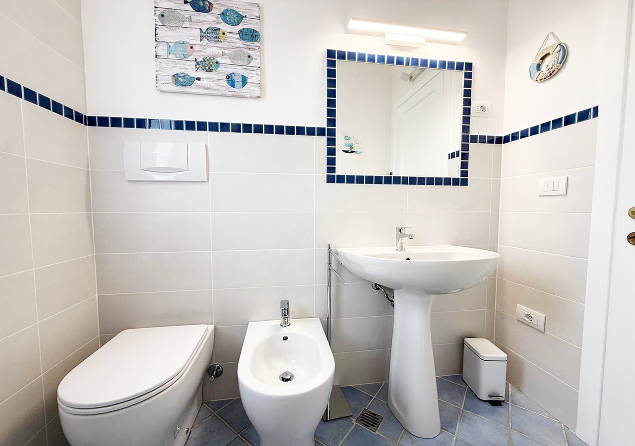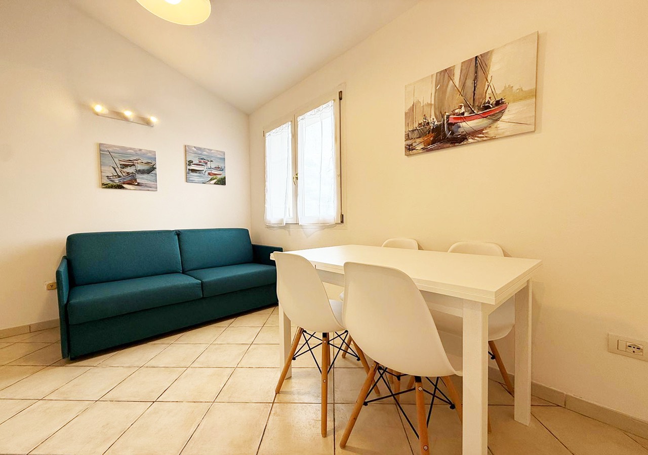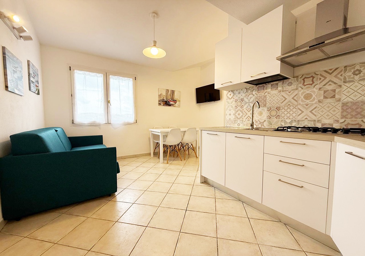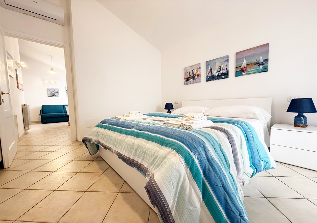 L’appartamento è composto da soggiorno con angolo cottura e divano letto matrimoniale, camera da letto matrimoniale, bagno completo con box doccia e balcone vista mare.