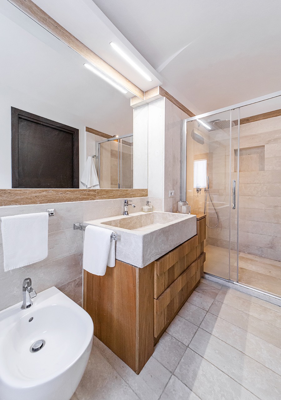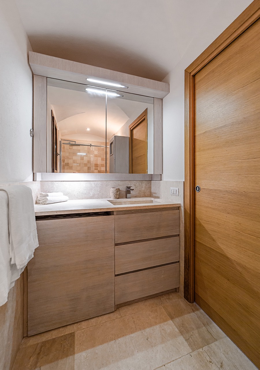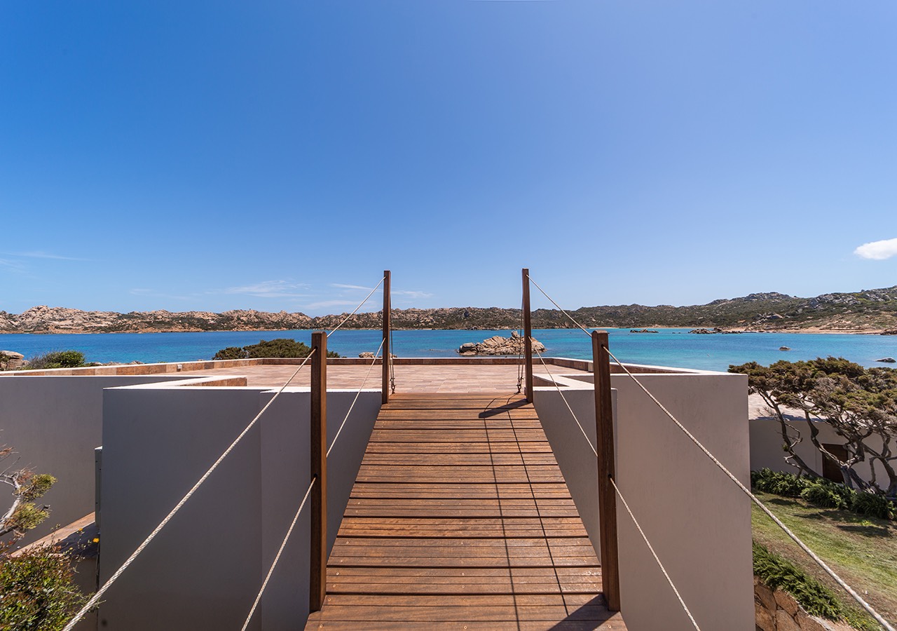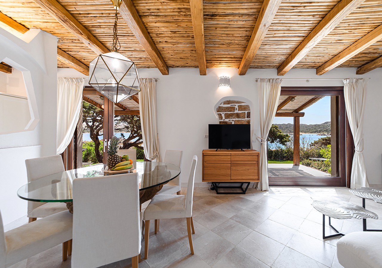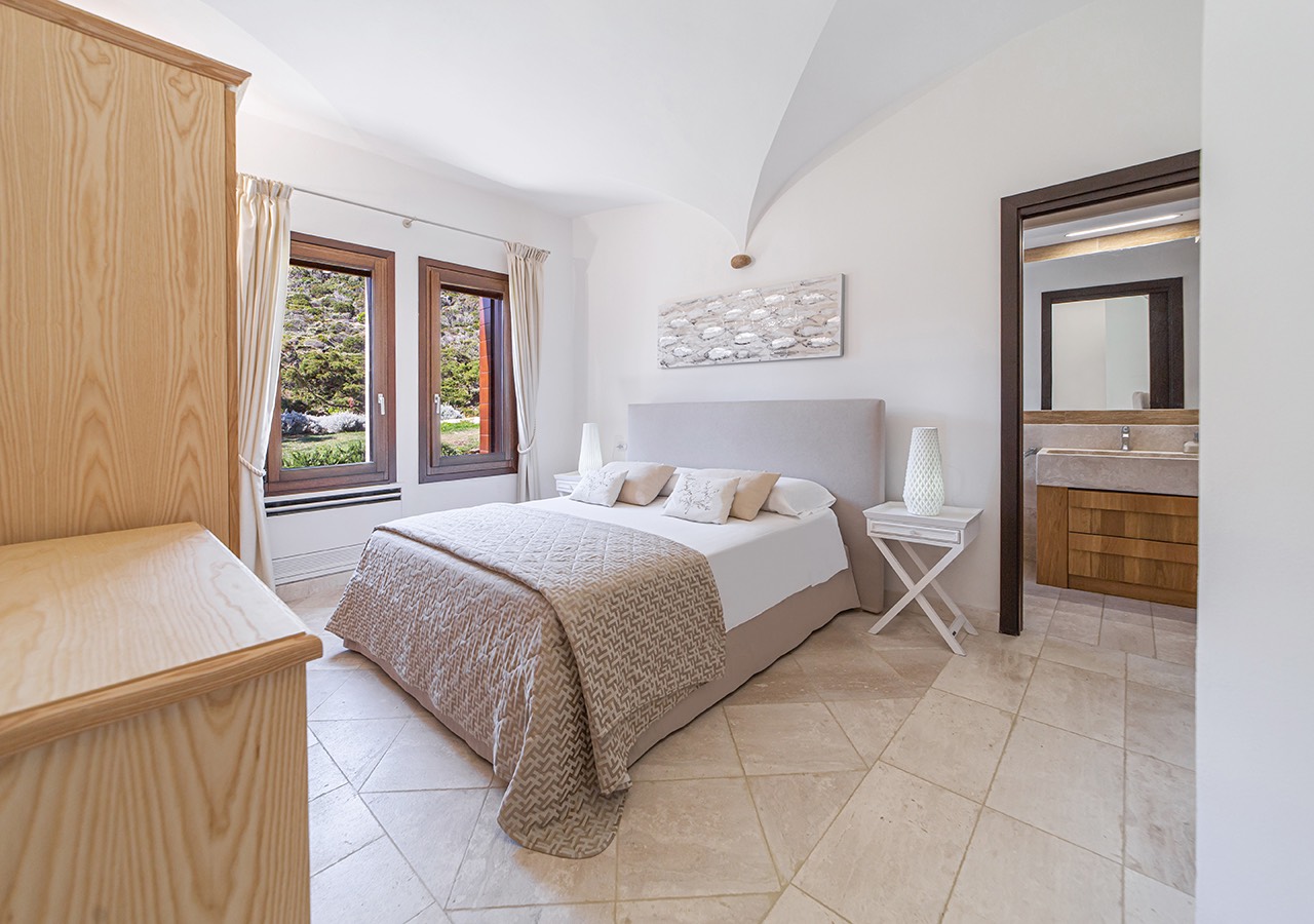 Nella villa principale troviamo ampio soggiorno vista mare con cucina attrezzata, camera matrimoniale con bagno ensuite, seconda camera matrimoniale, secondo bagno e terrazza attrezzata vista mare.