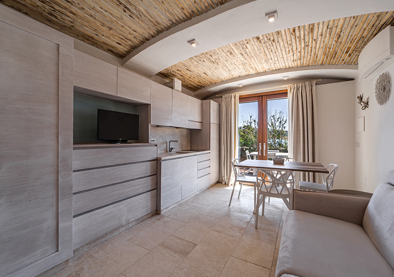 La depandance è composta da ampio soggiorno con angolo cottura, divano letto matrimoniale, bagno completo e terrazza attrezzata vista mare.