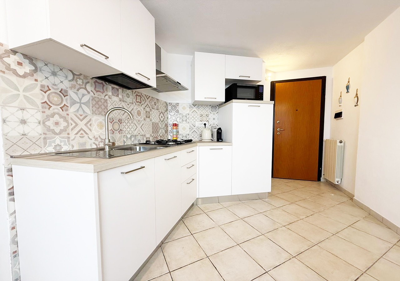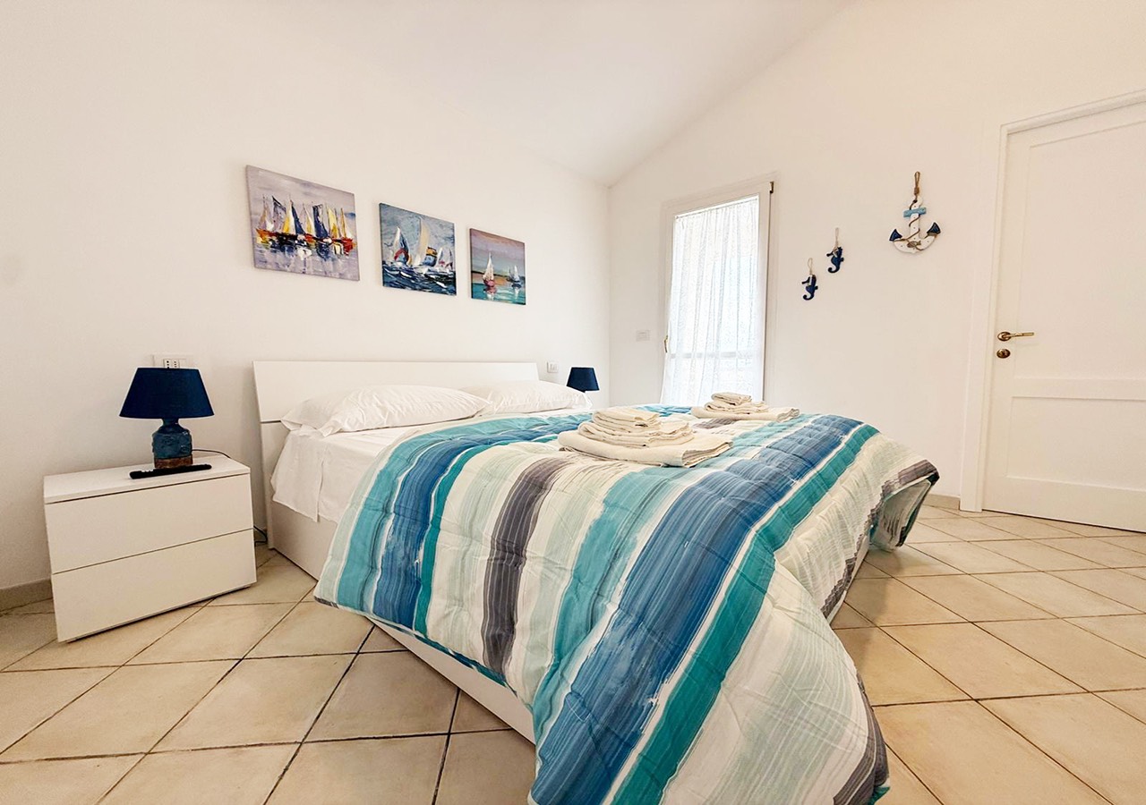 L’appartamento è composto da soggiorno con angolo cottura e divano letto matrimoniale, camera da letto matrimoniale, bagno completo con box doccia e balcone vista mare.